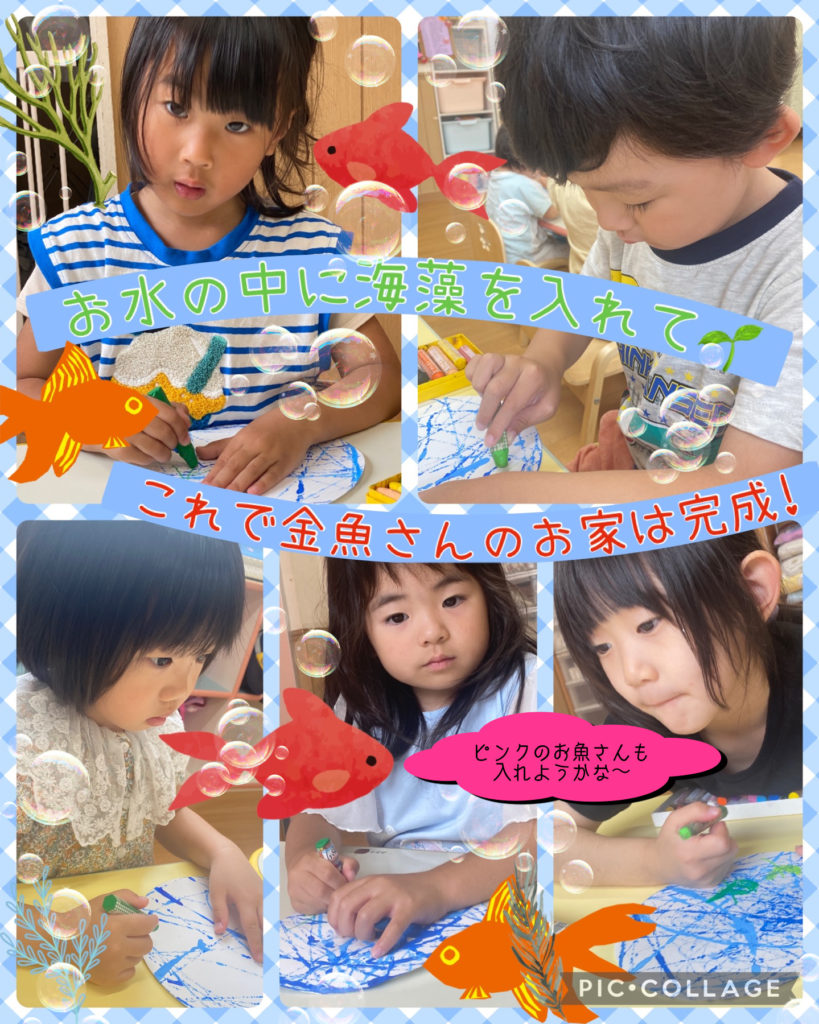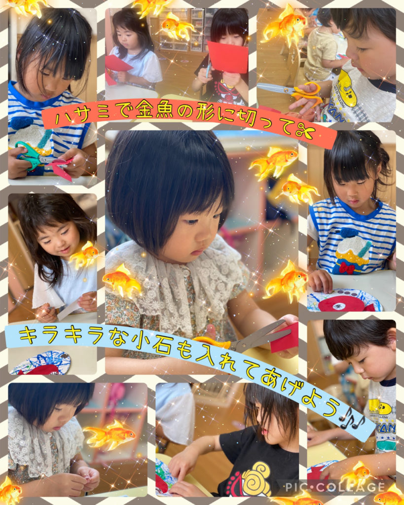 今回は金魚の団扇を作りましたよ‼️まずは金魚さんが住むお家に水を入れました🏠💧