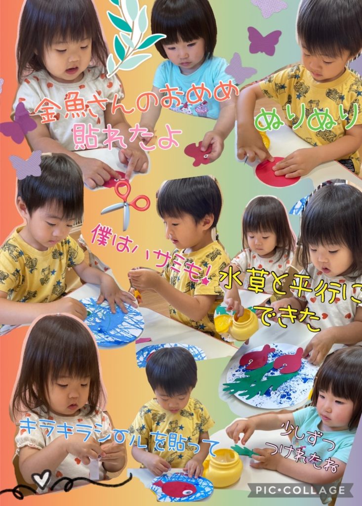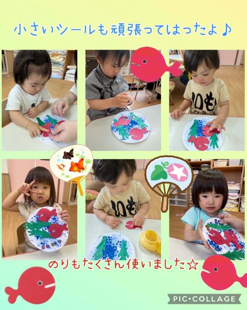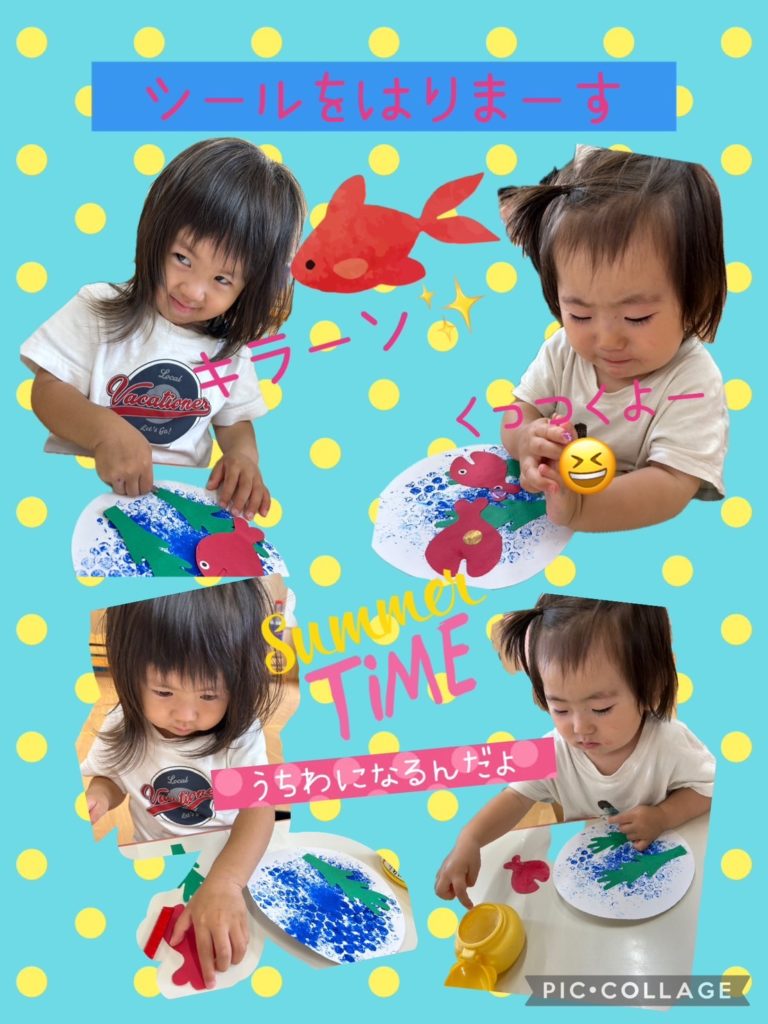 小さいお友達も目や海藻をペタっと貼ってくれましたよ🌿,,目は小さかったですが、指先を器用に動かしながら上手に貼れていました👀✨️