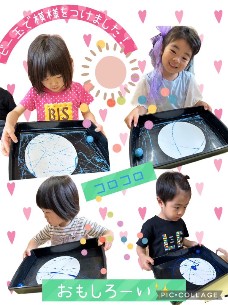 大きいお友達はビー玉をコロコロしながら、小さいお友達はプチプチスタンプでお水を入れてくれましたよ︎👍🏻 ̖́-