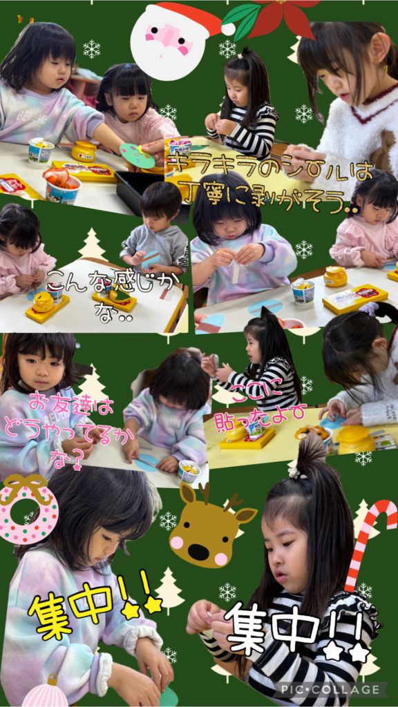 クリスマス制作🌲 未分類 2024.12.08 今回の制作はクリスマスツリーの制作! パーツが多いので根気が必要な内容で、時間をかけて頑張ってくれた子ども達です☺️ 集中している様子をご覧下さい♪ 完成品はクリスマス会でも飾りますのでお楽しみに😊 写真📷渡辺・山中 文章✏️山中