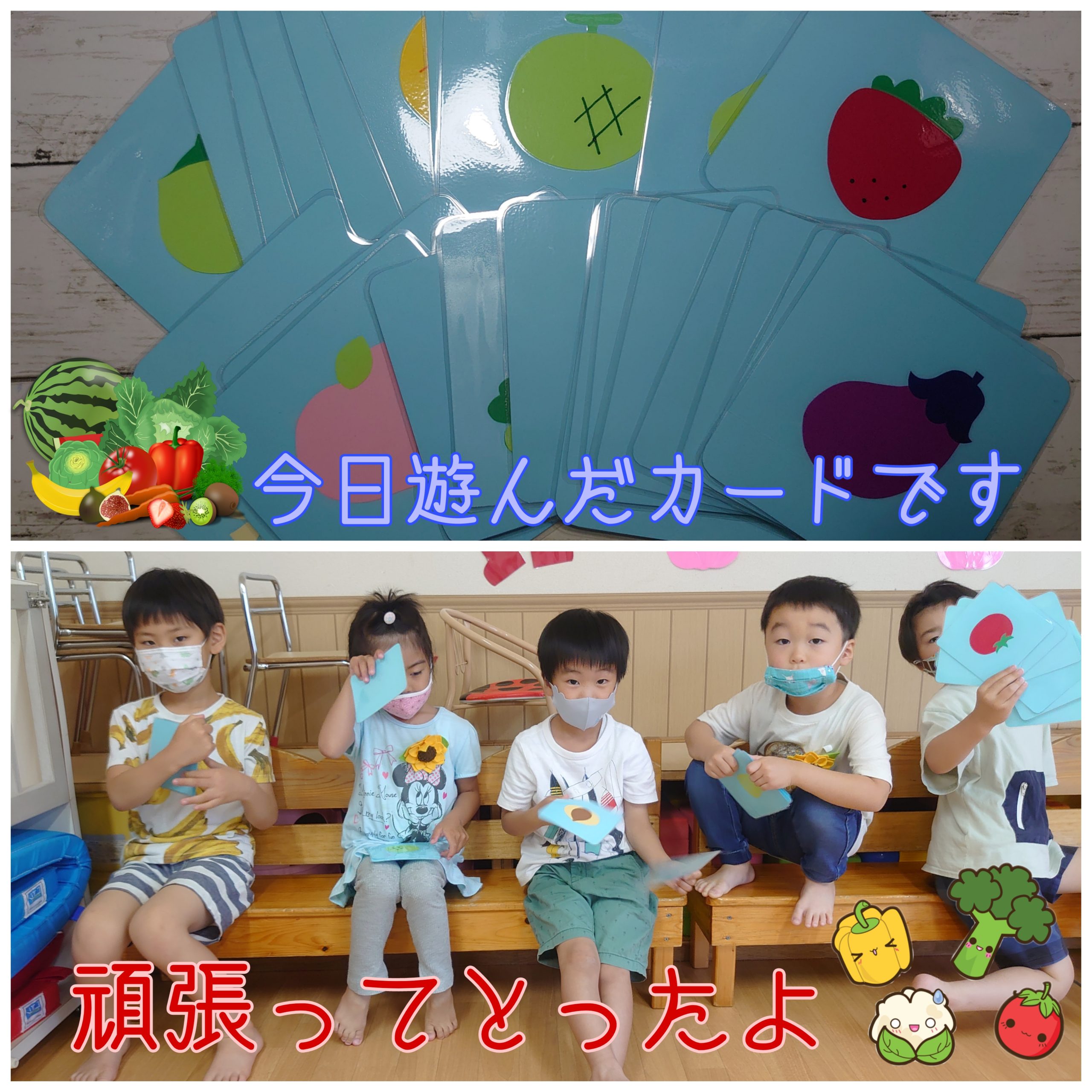 トマトにキャベツ、とうもろこし、なす…野菜だけではなく、桃やみかんのカードもあり、選ぶのに悩んじゃうお友達続出🤣